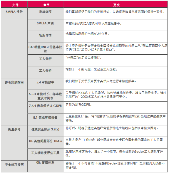 Sedex定期审查和更新SMETA,以确保其满足当前负责任采购的需求,并纳入新的立法变更更新。