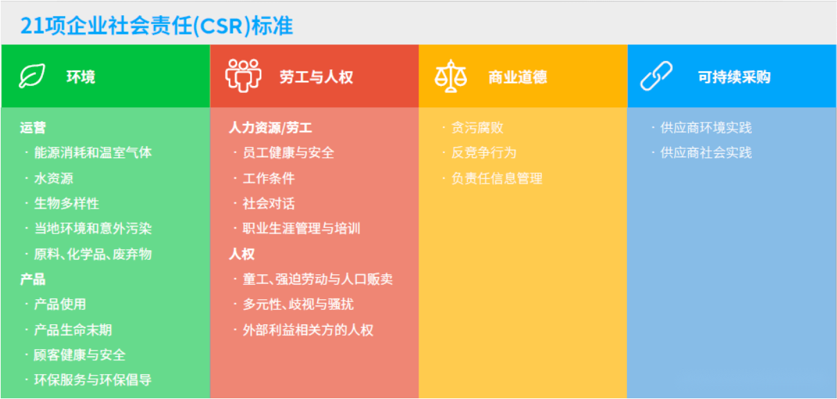 企业社会责任(CSR)管理体系的评估会考虑到与行业相关的重要议题公司是否在风险国家运营以及公司规模和地理范围。